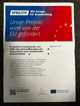 Wir freuen uns eine Förderung von ILB erhalten zu haben! Mit den Fördermitteln der EU ist es uns möglich das Unternehmen weiter auszubauen und für die Zukunft effizienter sowie Umwelt- und Recourcenschönender Arbeiten zu können!